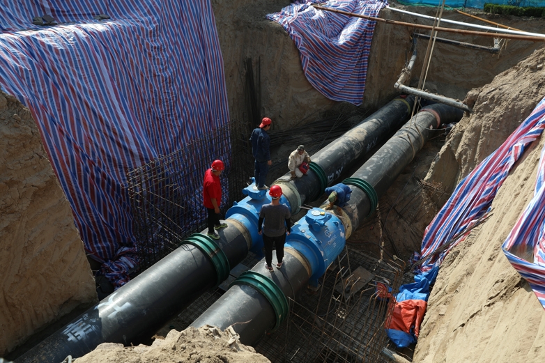 截至7月27日,工程累計開挖溝槽5250米,安裝管道3350米。其中,一標段過安邑中路、三標段過安邑東路均順利完成,工程各項指標正朝著既定目標有序推進中。