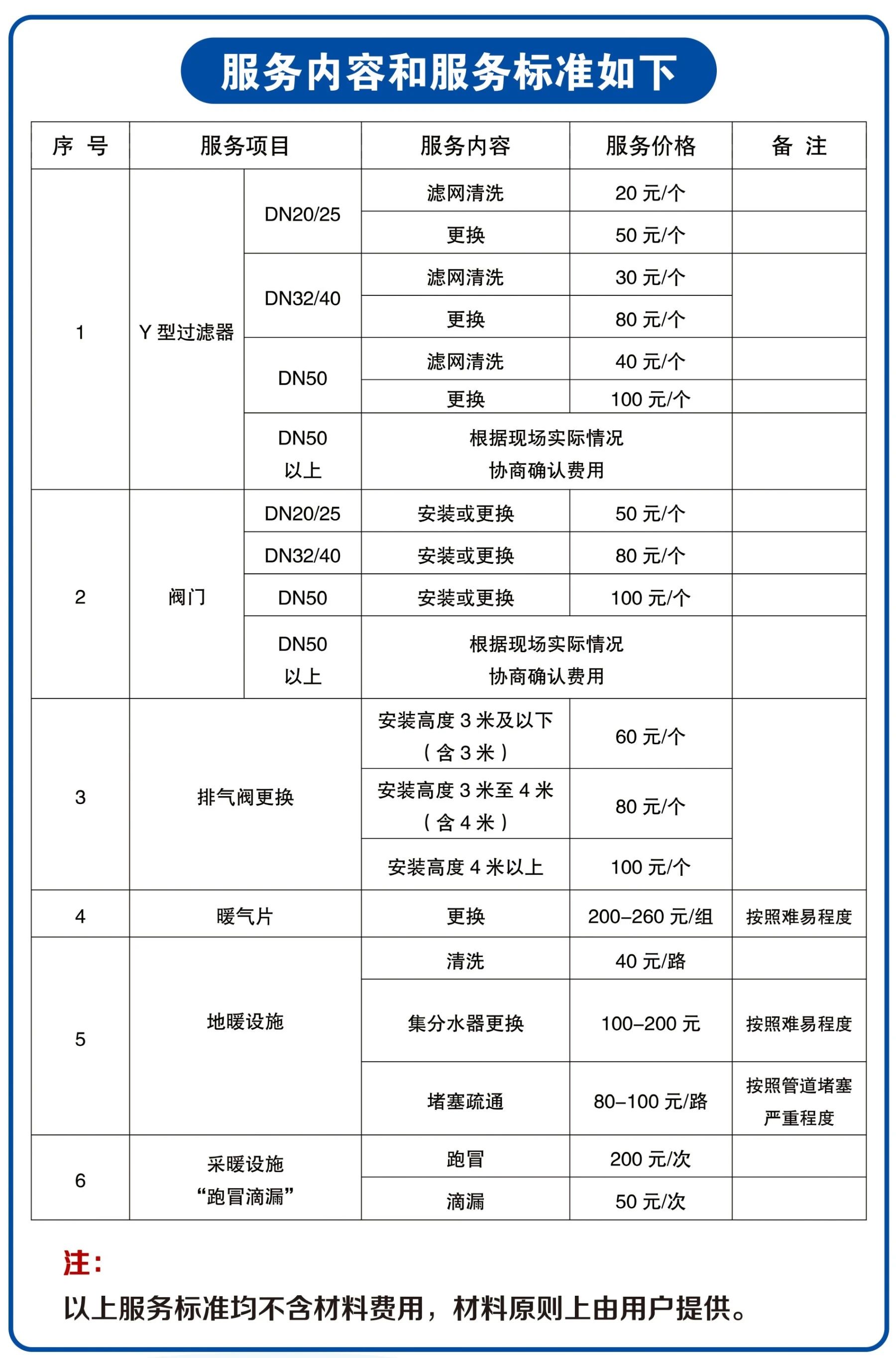為此,公司抽調(diào)專業(yè)人員,組建專業(yè)隊(duì)伍,成立暖心服務(wù)隊(duì),在供暖期為熱用戶提供延伸有償服務(wù)。