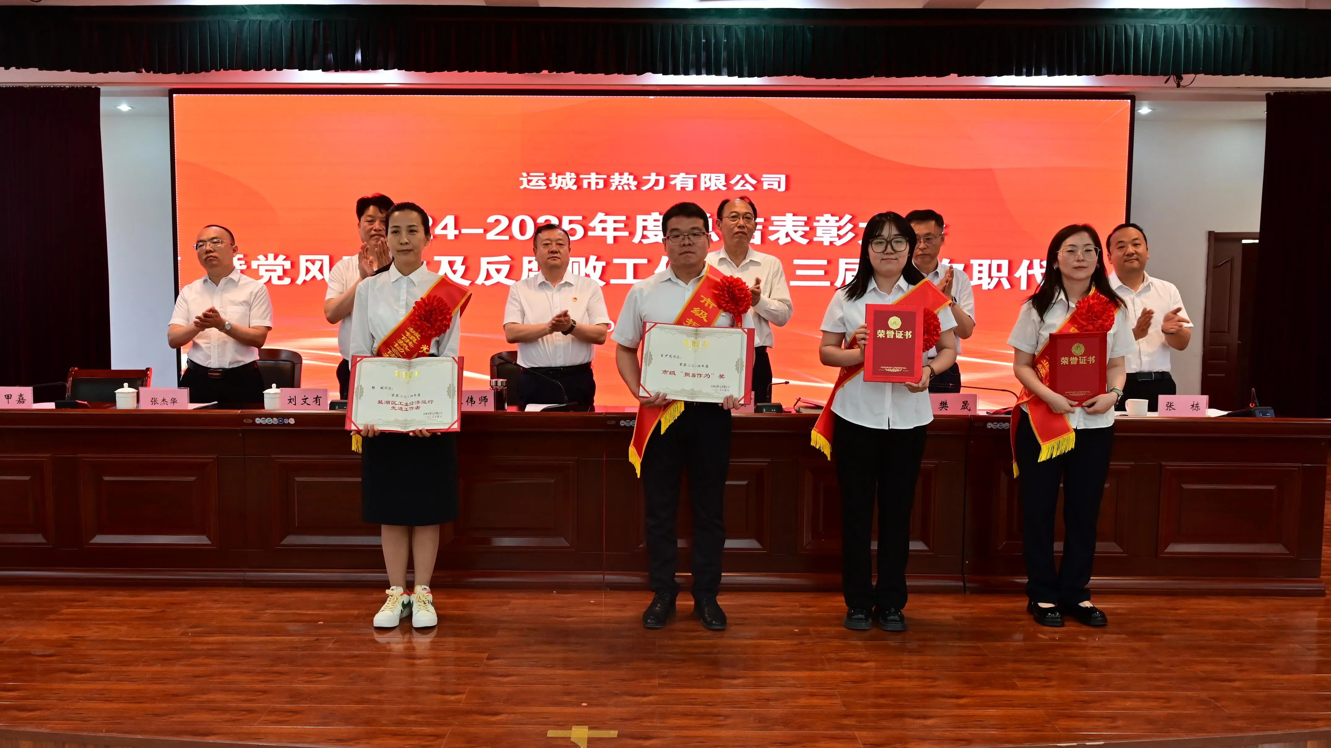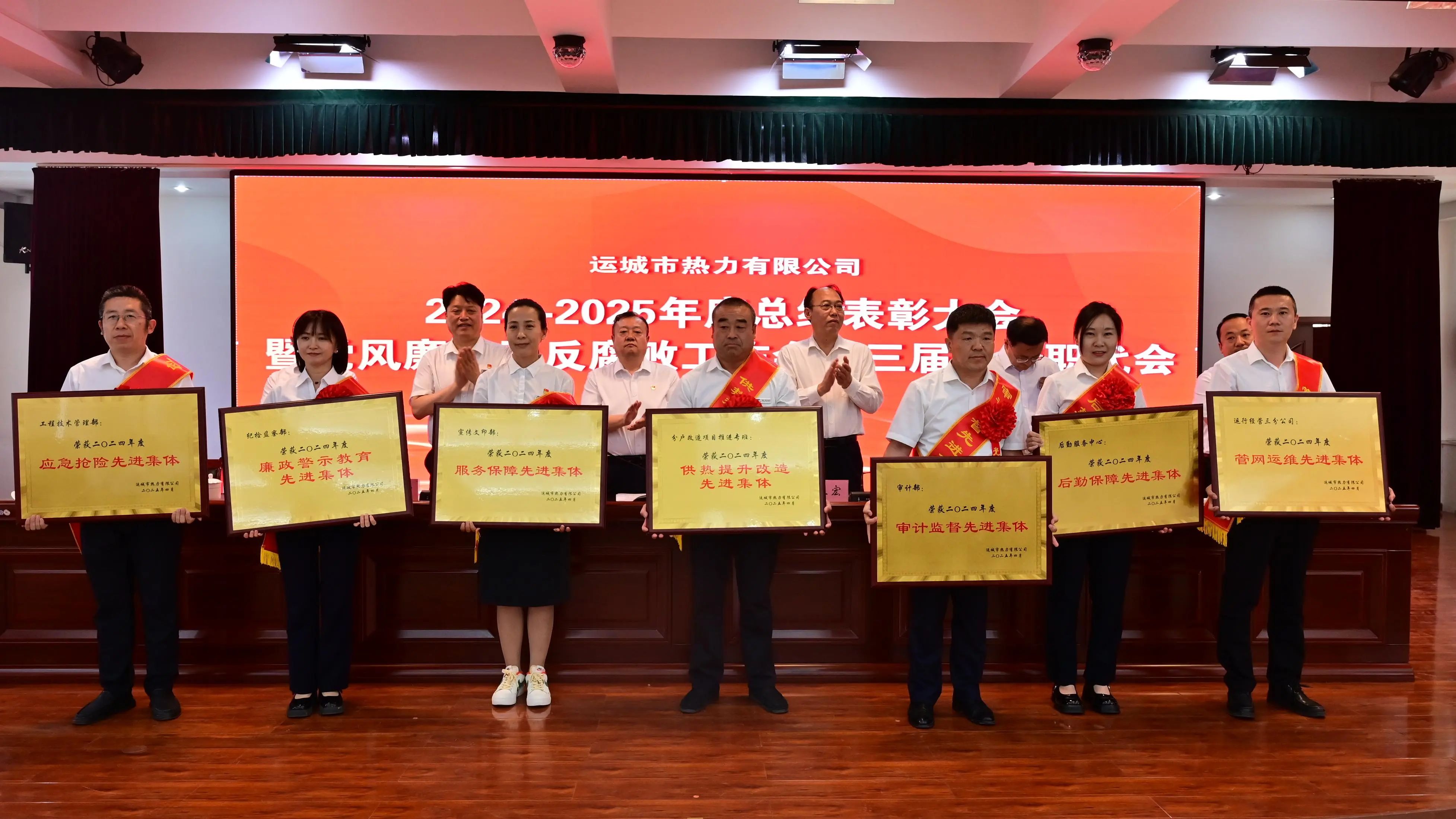 會上,黨委副書記、總經(jīng)理劉文有作了公司2024年度工作報(bào)告;黨委委員、紀(jì)委書記張棟同志作了公司2024年度黨風(fēng)廉政及反腐敗工作報(bào)告。黨委委員、副總經(jīng)理席甲嘉宣讀了《運(yùn)城市中心城區(qū)集中供熱保障領(lǐng)導(dǎo)組關(guān)于表彰2024年度優(yōu)秀合作單位的通知》《運(yùn)城市熱力有限公司關(guān)于2024年度公司團(tuán)體及個(gè)人榮獲上級單位表彰情況的通報(bào)》《運(yùn)城市熱力有限公司關(guān)于表彰2024-2025年度優(yōu)秀集體及先進(jìn)個(gè)人的通知》,并組織頒獎(jiǎng);會議對6個(gè)優(yōu)秀合作單位、12個(gè)團(tuán)體獎(jiǎng)、7個(gè)團(tuán)體專項(xiàng)獎(jiǎng)、6個(gè)優(yōu)秀班組以及47名優(yōu)秀個(gè)人進(jìn)行了表彰。
