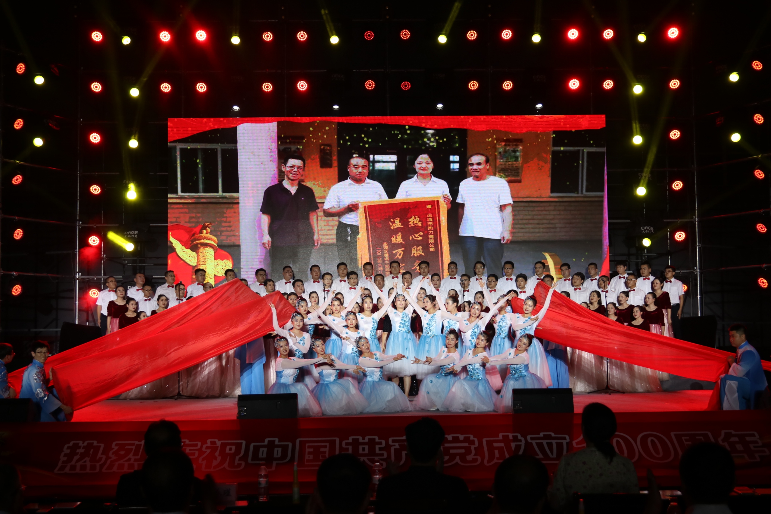 夜色中晚風(fēng)送來陣陣清涼,優(yōu)美的歌聲迎來如潮的掌聲。當(dāng)晚,各個參賽隊依次登臺演唱。在必唱曲目《沒有共產(chǎn)黨就沒有新中國》的嘹亮歌聲中拉開帷幕。我公司深情悠揚(yáng)的唱響自選曲目《天耀中華》,唱出國有企業(yè)黨員干部職工的濃濃愛黨情,展示了國有企業(yè)黨組織及黨員干部朝氣蓬勃、積極向上的風(fēng)采,將整場比賽推向高潮。在全場高唱《歌唱祖國》的歌聲中落下帷幕。最后,運(yùn)城市熱力有限公司以9.86分的優(yōu)異成績獲得比賽一等獎。